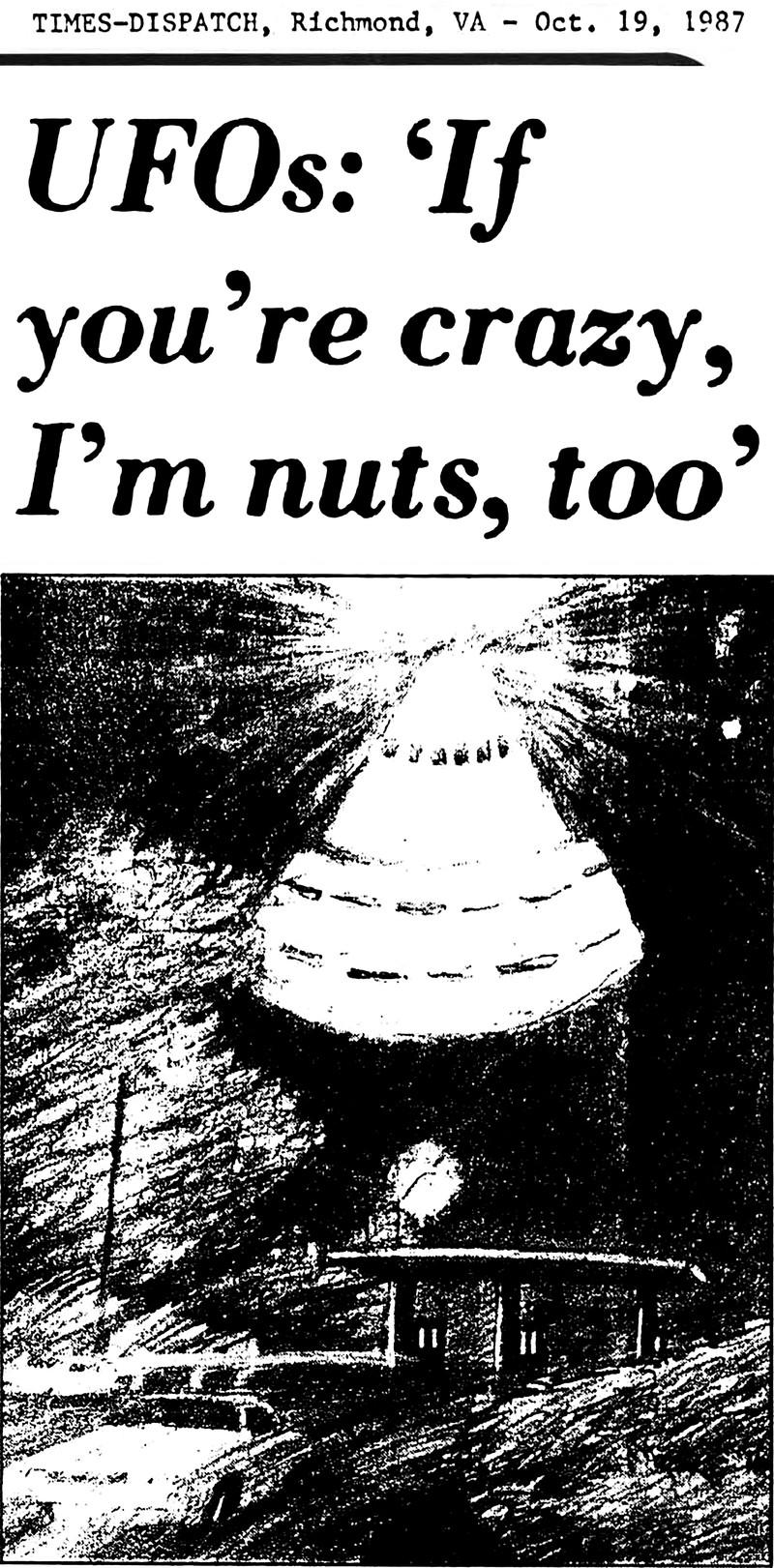 The reproduction of the image made it very impressionistic, but perhaps that adds to the mystery of being spirited away in your sleep. From UFO Newsclipping Service, 1998.