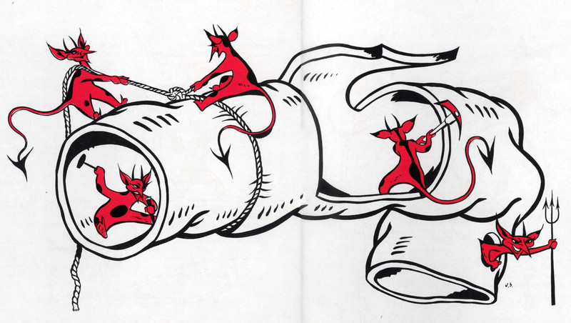Here's the difference between butter and margarine blends. Did you know that the word “margarine” comes from the Greek for “pearl”? We’d show you the mechanical oyster that makes fake butter pearls for the robot cow, but it’s a thing of nightmares. Art by Ton van Tast a.k.a. Anton van der Valk, 1925.