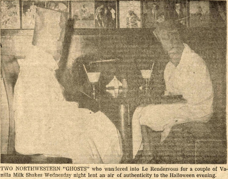 We weren't sure what exactly the mascot was eating, until we saw a separate photo of the mascot carrying away an effigy of its rival Ole Miss. By the way, it's a terrible thing to photograph a mascot (or one of its close relatives, theme park characters) with its head removed. We've sent a message back through time, cautioning the photographer against violating mascot etiquette. (What's the point? You know nothing will convince him not to use these photos.) From Memphis State's 1963 yearbook.