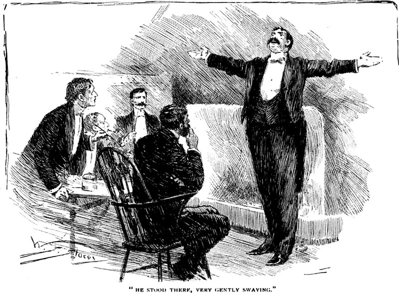 An illustration from a 1902 issue of The Strand magazine. The caption reads: "He stood there, very gently swaying."