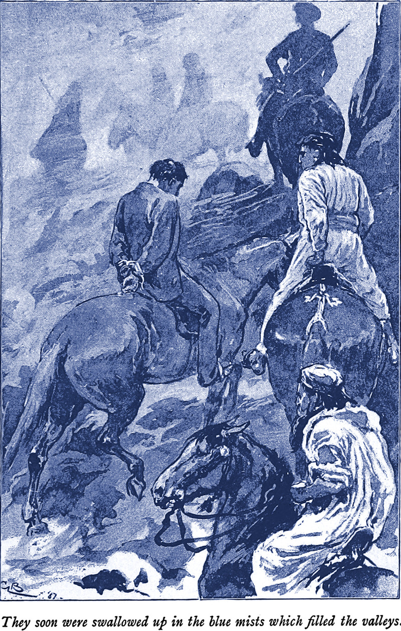 "They soon were swallowed up in the blue mists which filled the valleys," from Twycross's Redemption by Alfred Saint Johnston, 1888.