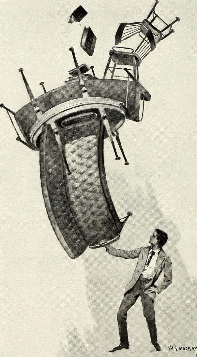 From St. Nicholas magazine, 1903. The caption reads: "'Well, anyhow,' said he, 'I'll stop when I get to the ceiling.'"