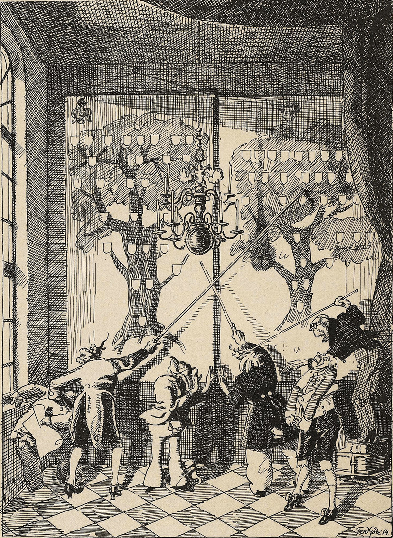 You've seen photographers' faces reflected in mirrors and windows, but it can happen in drawings, too. From The Century, 1886.
