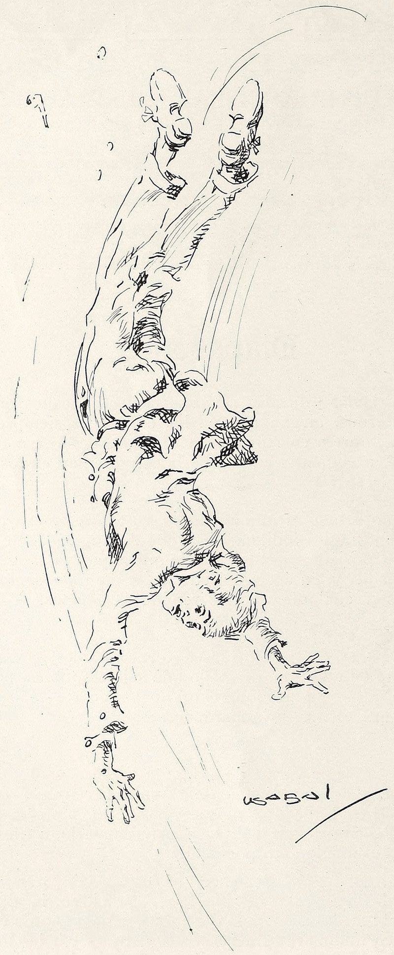 The artist has created the suggestion of one cloven hoof. From Nebelspalter, 1893.