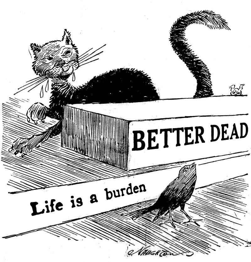 "Not for me." From the Massachusetts Society for the Prevention of Cruelty to Animals's Our Dumb Animals, 1944.