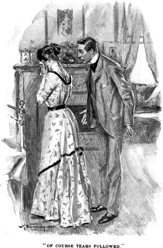 An illustration from an 1899 issue of Harper's magazine. The caption reads: "Of course tears followed."