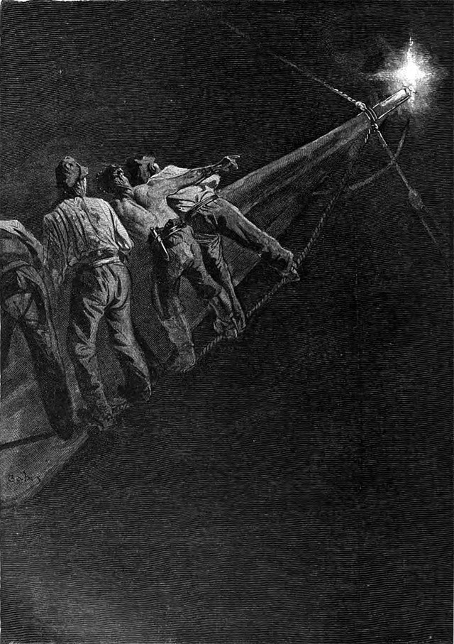 An illustration from a 1904 issue of The Windsor magazine. The caption reads: "On and on they sailed."