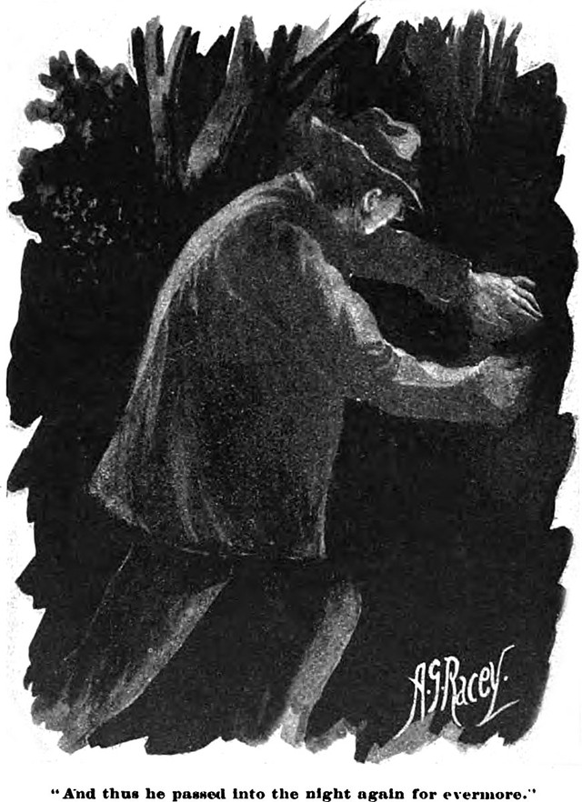 An illustration from an 1895 issue of The Canadian magazine. The caption reads: "And thus he passed into the night again for evermore."