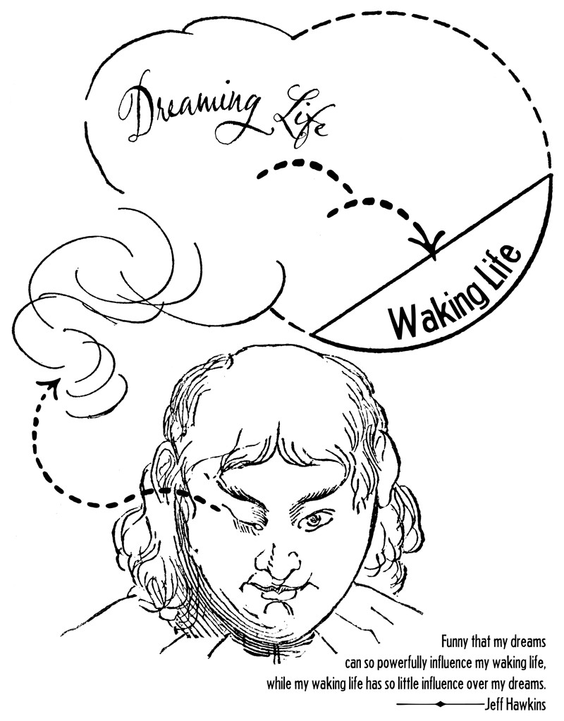 A doll possesses a "dim, vague, blurred, vicarious, secondary consciousness of a soul embodied in an intensely loved but inanimate companion" and looks forward to encountering "the legendary doll of dolls" ( John Cowper Poyws, Porius). From Prof. Oddfellow's sketchbook: