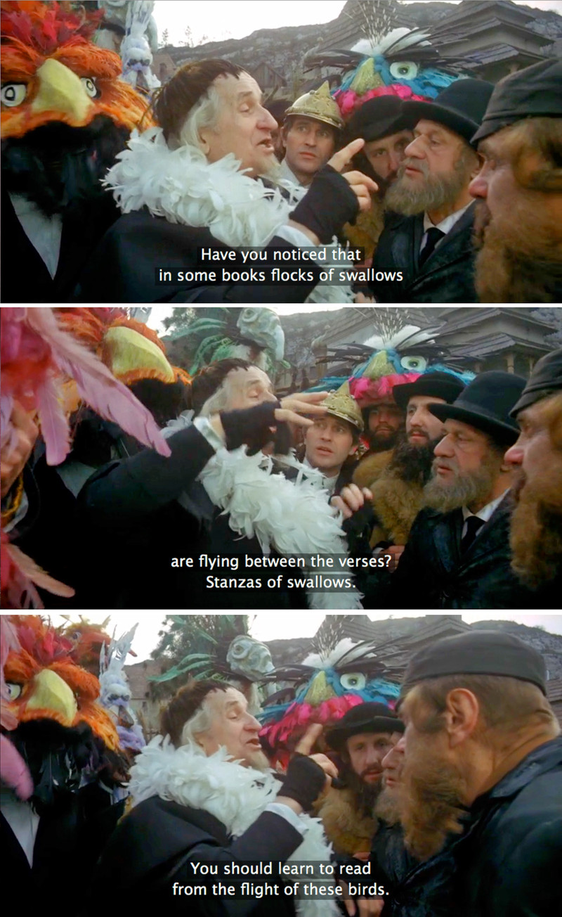"Have you noticed that in some books flocks of swallows are flying between the verses? Stanzas of swallows. You should learn to read from the flight of these birds." This we learn in The Hourglass Sanatorium (1973, Poland), a dreamy film about bending time, the nature of death, eternal recurrence, and the atrocities of World War II.