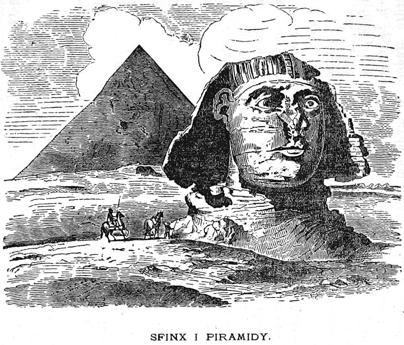 The sphinx drawn from memory (apparently), from Ziemia Święta i Islam czyli szkice z pielgrzymki do Ziemi Świętej by Józef Sebastian Pelczar, 1875.