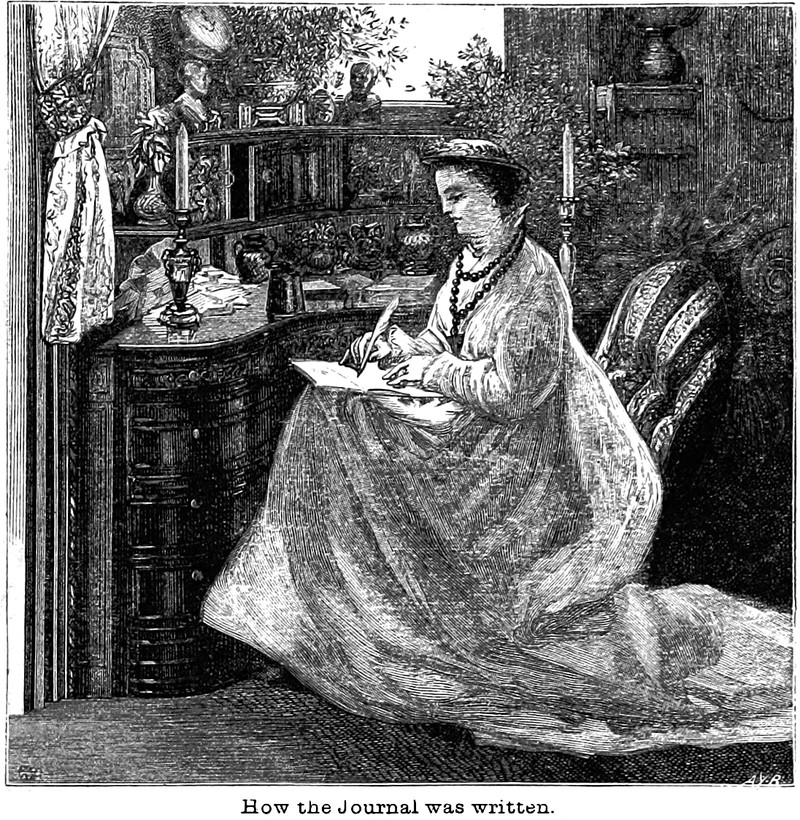 How the journal was written — a word at a time (oldest trick in the book). From A Voyage in the 'Sunbeam' by Annie Brassey, 1878.