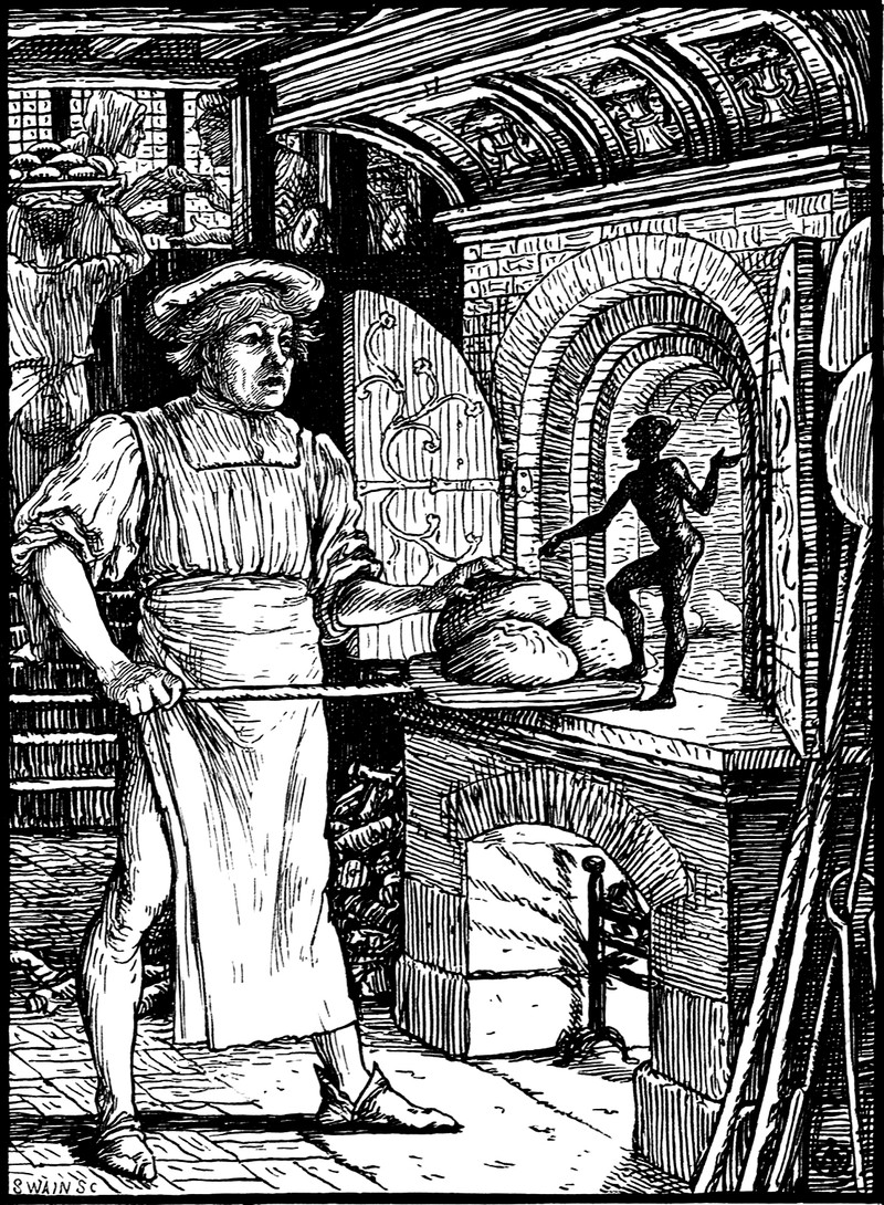 In vain squalled the cook-maid, and prayed not to wed; Cinder crunched in her mouth, cinder rained on her head. She sank in the coffin with cinders strewn o'er, And coffin nor Betty saw man any more.