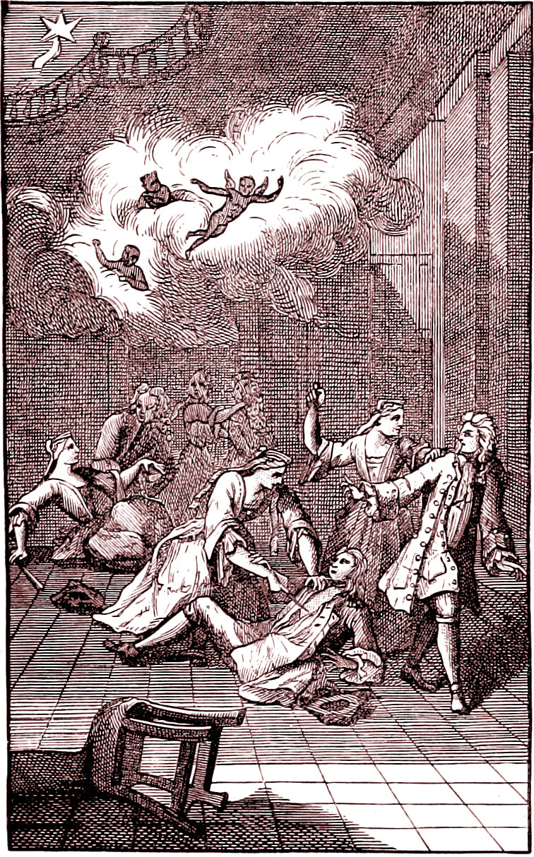 "Aurora transformed herself into a cavalier," from Dicks' English Library of Standard Works, 1884.