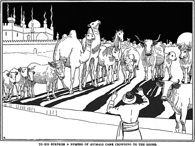 "And on you be peace!" From Persian Tales, translated by D. L. R. and E. O. Lorimer and illustrated by Hilda Roberts, 1919.