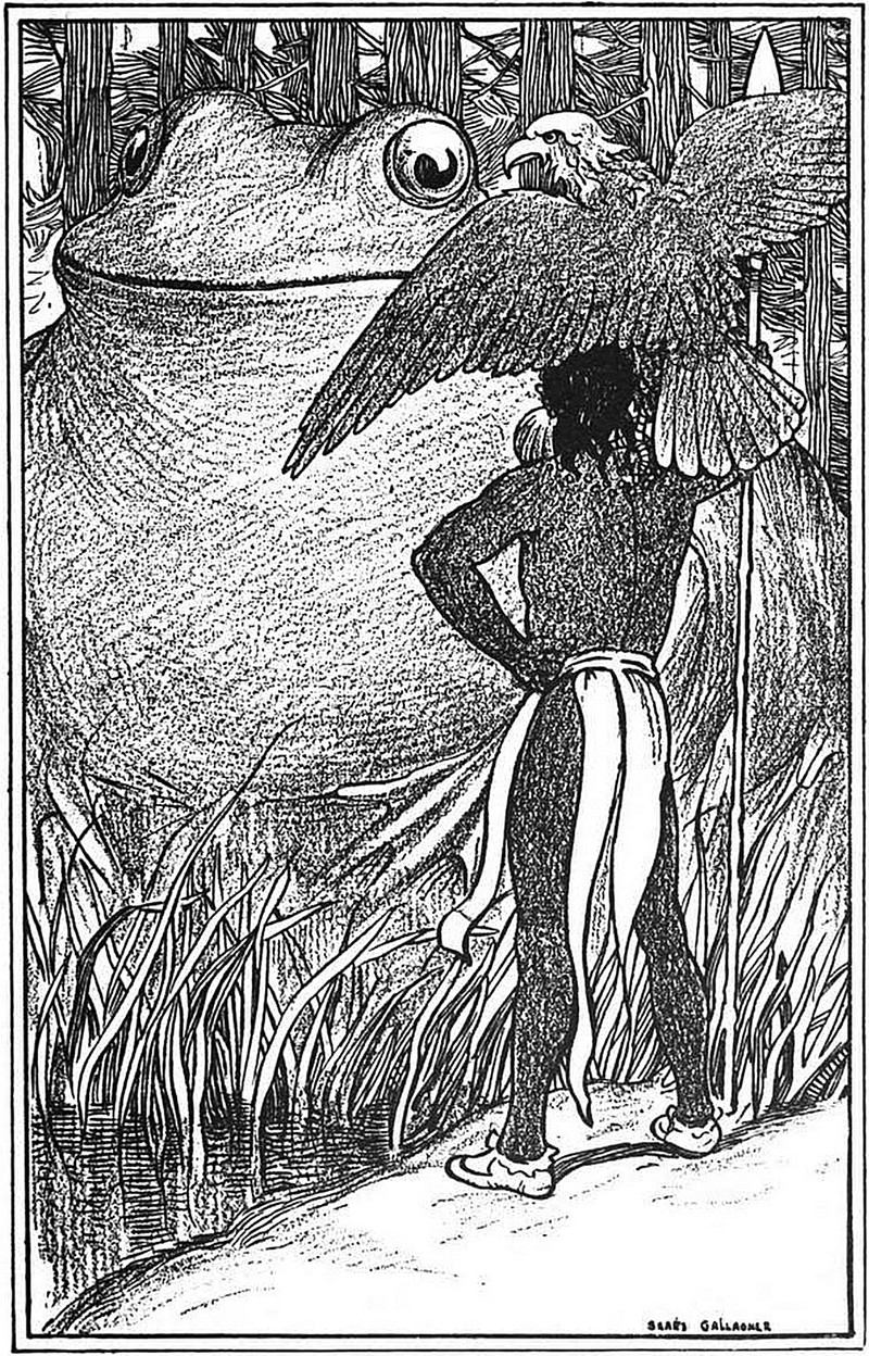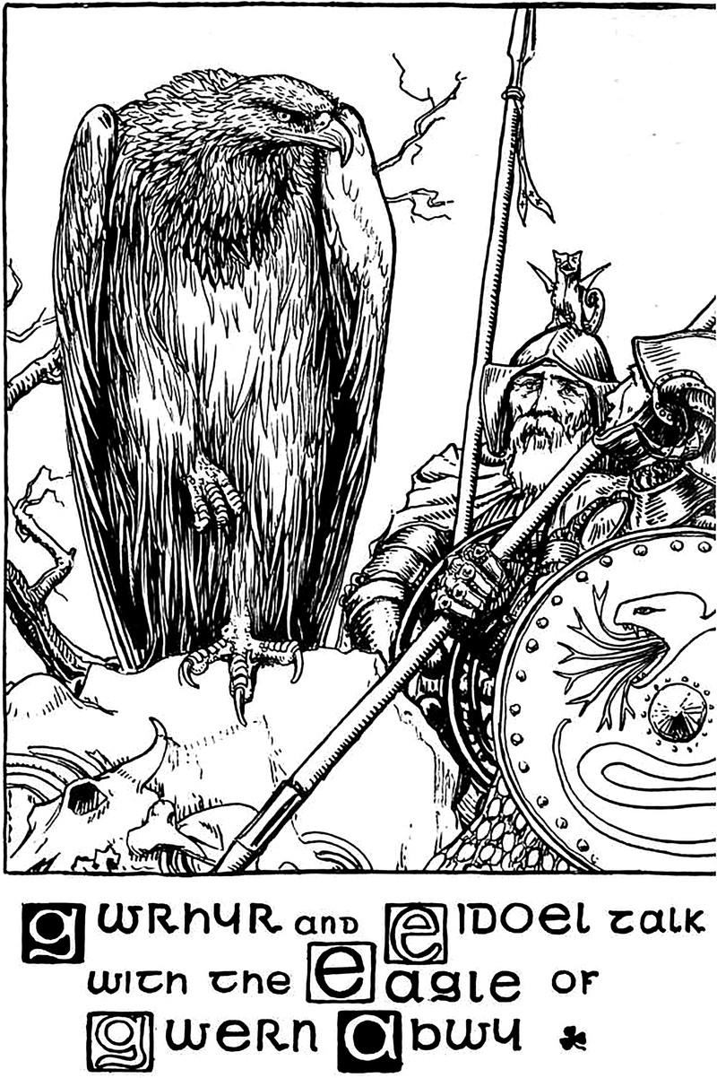 Talking with the eagle, from Celtic Fairy Tales, selected by Joseph Jacobs and illustrated by John D. Batten, 1892.