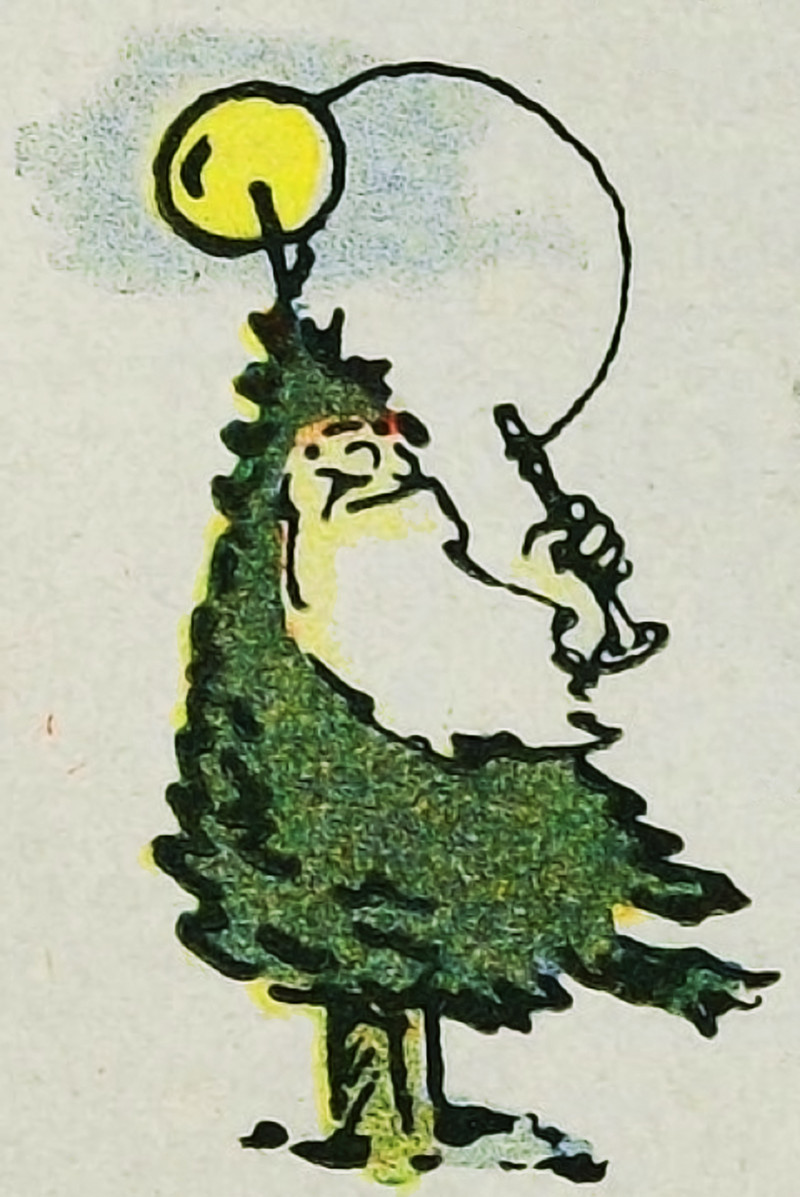 Holidays collide -- a coffin on a Christmas tree. From Volshebnyi Fonar', 1906.