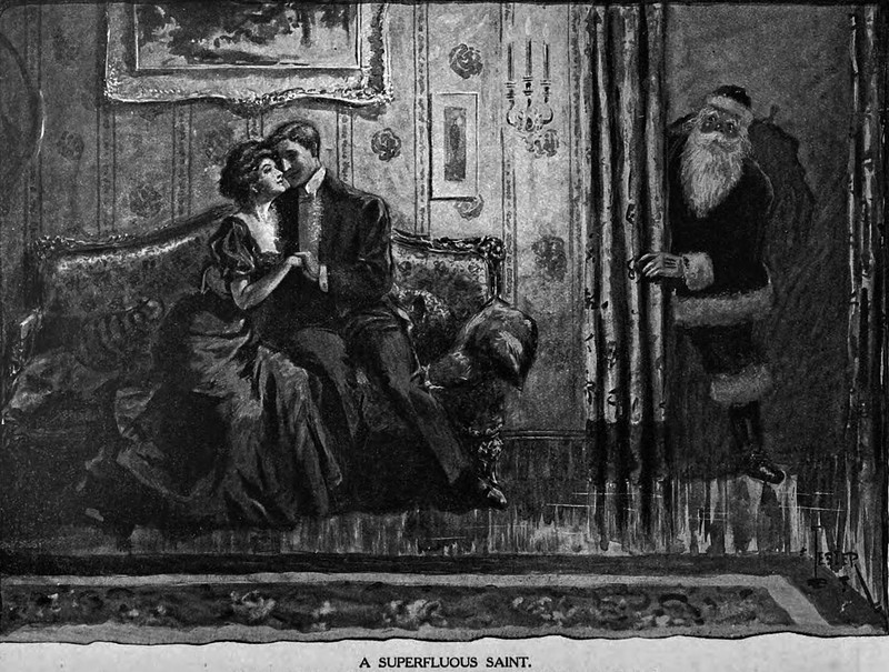 A chimney goes down Santa's throat. From The Judge, 1901.