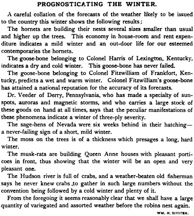 How true this weather forecast is, even today. From Judge's Library, 1892.