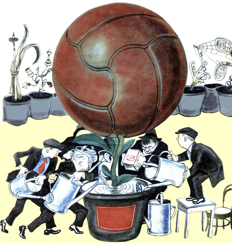 INSTRUCTIONS: Click to undevelop the land. From Krokodil, 1954.