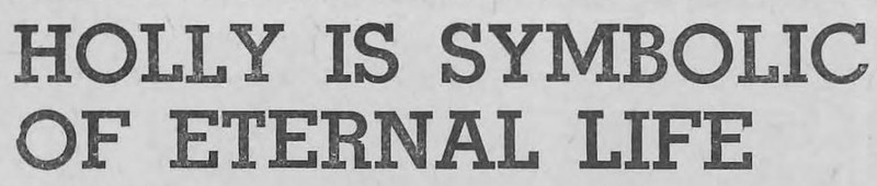 "Holly is symbolic of eternal life." If only today's newspapers could report what matters. From Stoutiana, 1916.