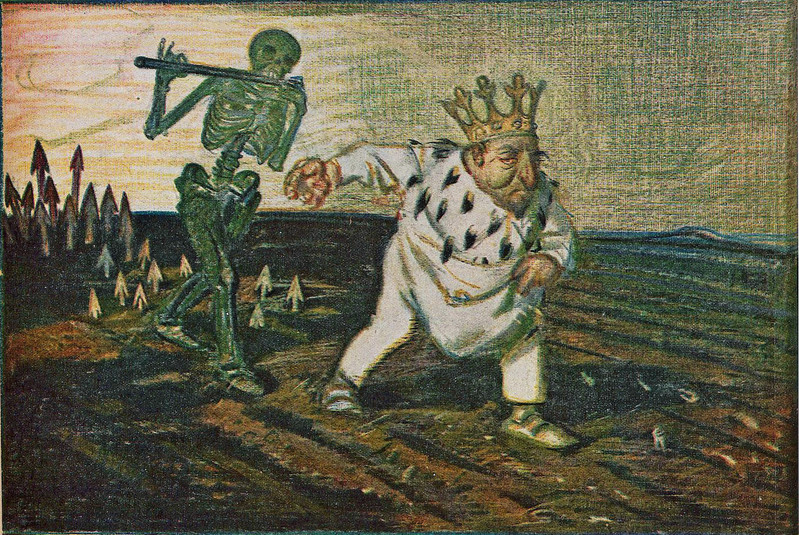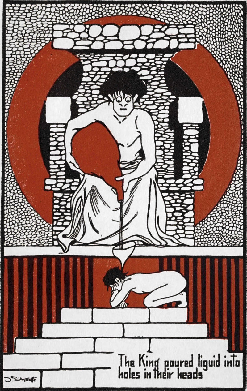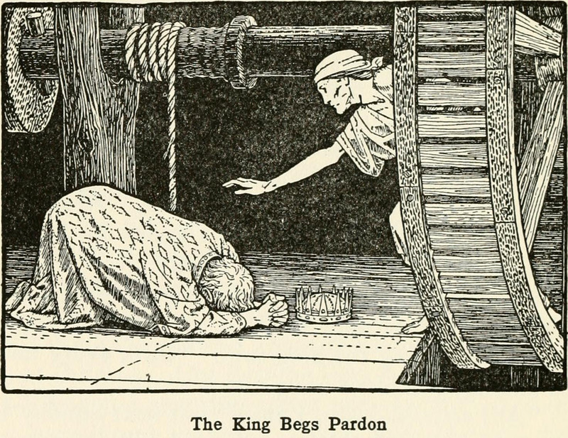 The king begs pardon. From Europa's Fairy Tales by Joseph Jacobs and illustrated by John Batten, 1916.