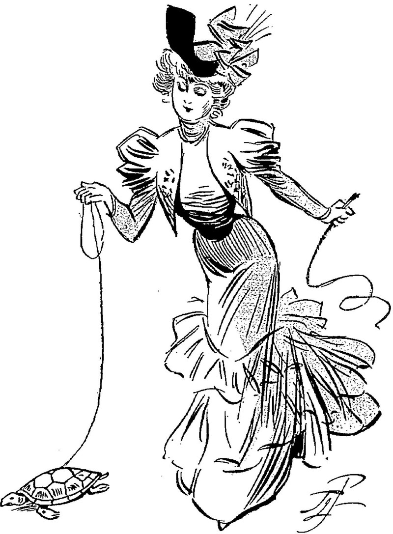Walking the turtle. From Le Journal Amusant, 1905.