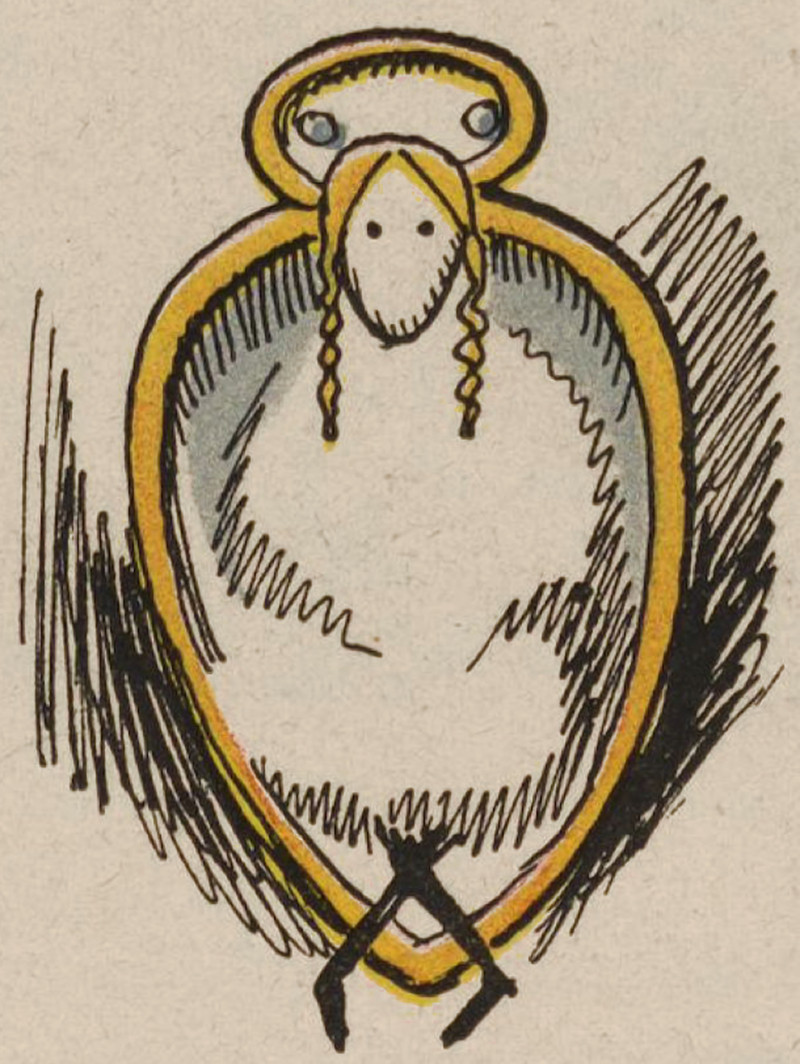 What do you see in this picture? If you see a bird (with a white beak and a mustache-like wattle) it means that you are meant to sing your song of life and to remove any foreign substances from your feathers. If you see a human figure (with no face but eyes, and blond braids, sitting in one of those egg-like chairs from the 60s), it means you like to show off your personal style and are intrigued by those weird egg-like chairs from the 60s. Our illustration is from Lustige Blätter, 1908.