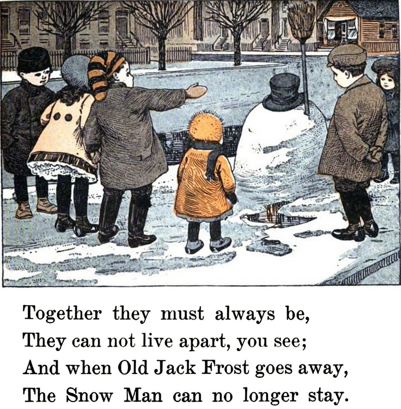 The Snow Man and Jack Frost are inseparable partners. From the Elson Primary School Reader, Book One, 1913.
