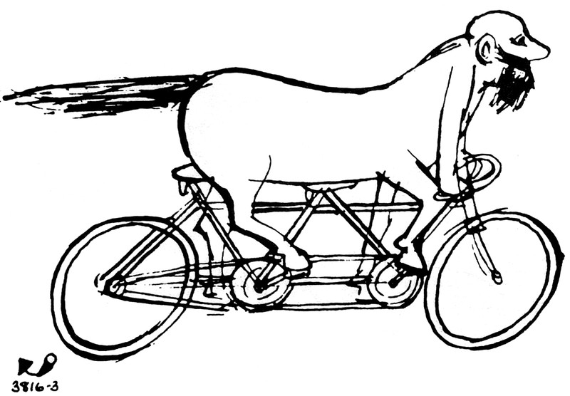 Jonathan notes: "I'm guessing it's a sort of sendup of the 'bicycle craze,' but it's funny how some of the items pictured probably anticipate backyard children's vehicles and amusement-park cars of the late 20th c."