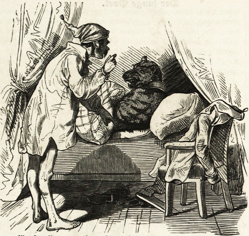Reblog if you've come home to a dog in your bed. From Fliegende Blätter, 1847.