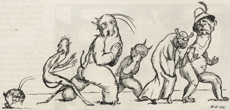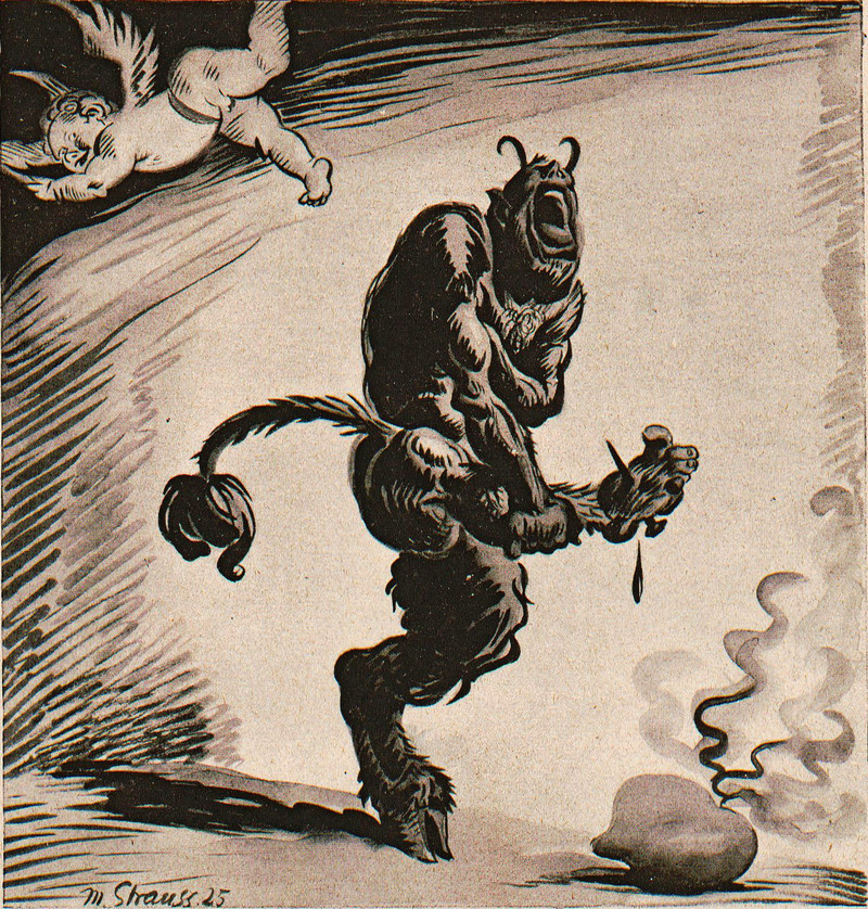 Here's a precursor to Hellboy. From Nebelspalter, 1923.