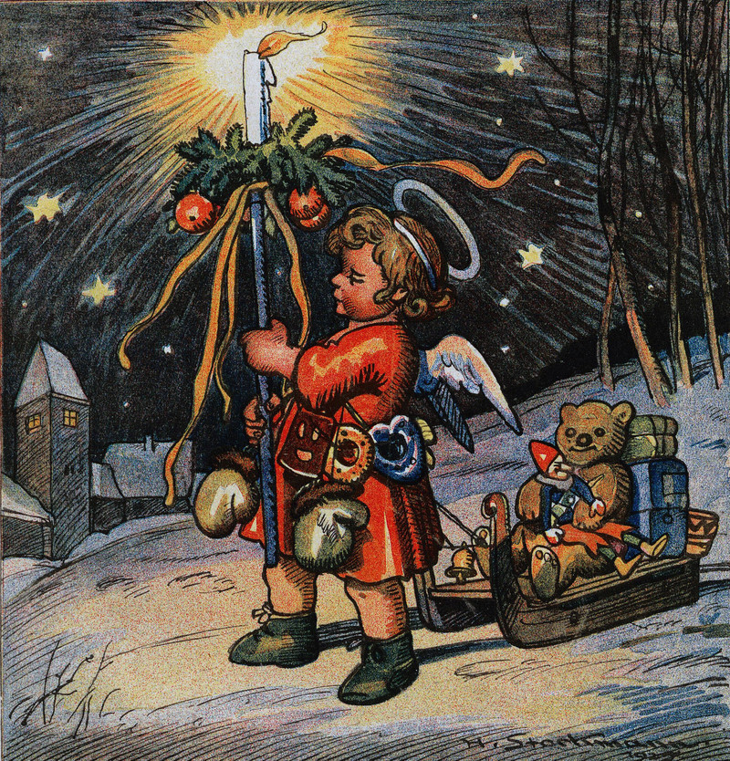 To see us out, here's a character from The White Christmas and Other Merry Christmas Plays. He says, "For I'm the Wishing Man. I have wishbones on my fingers, I have myst'ry in my eyes, my clothes are trimmed with horseshoes, and they're stained with magic dyes. My pocket's full of rabbits' feet, and clover leaves and charms; for luck I've got a big black cat all tattooed on my arms." Good luck!