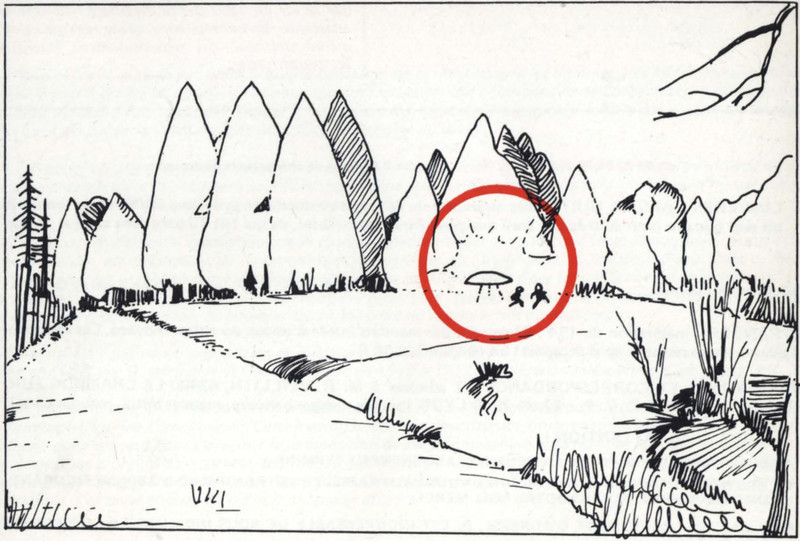 Ah, the classic circling of the obvious anomaly, a practice as old as anomalies themselves. From Lumières Dans la Nuit, 1980.