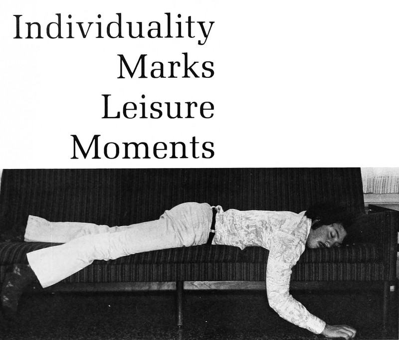 "Individuality marks leisure moments." As of this posting, the phrase remains a Googlewhack. From York College of Pennsylvania's 1975 yearbook.