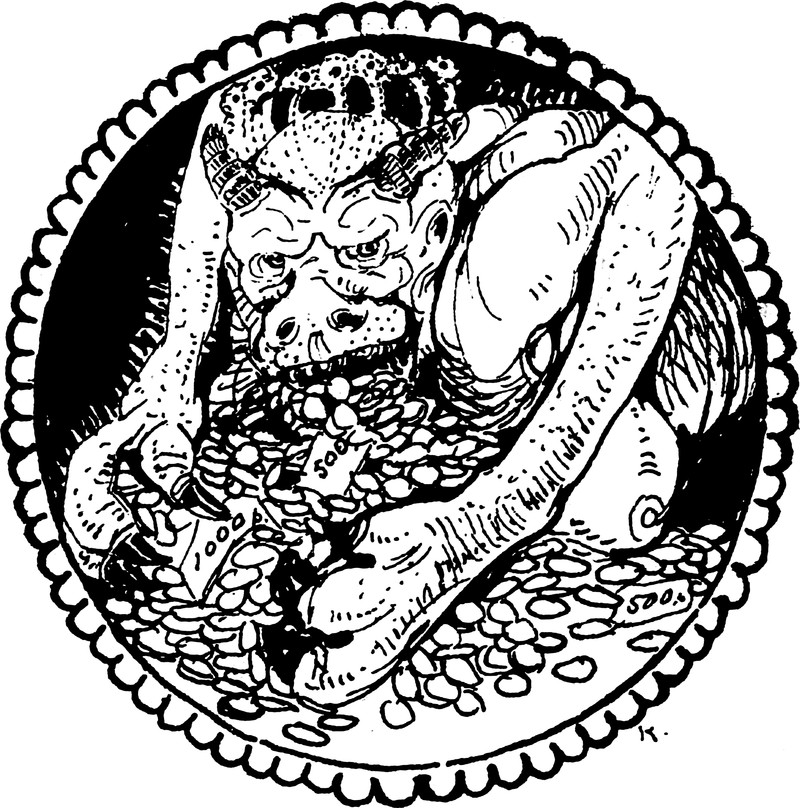 Mouths open to catch coins. From The Kingdom of Coins by Bradley Gilman, 1894.