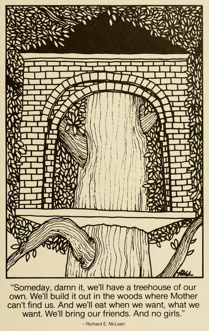 We'll have a treehouse of our own, some day. From Hampden-Syndey's 1984 yearbook.