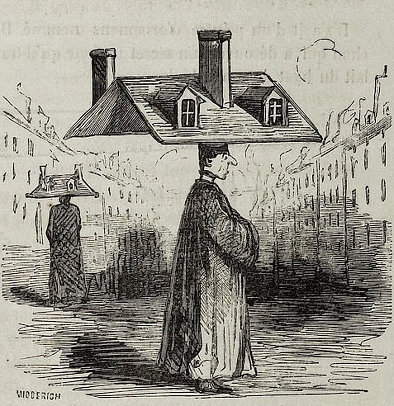 We used to sightsee like this, until the airlines began micromanaging carry-on luggage. From Nebelspalter, 1904.