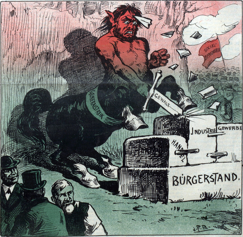 Mind that Father Time doesn't run over you. From Nebelspalter, 1904.