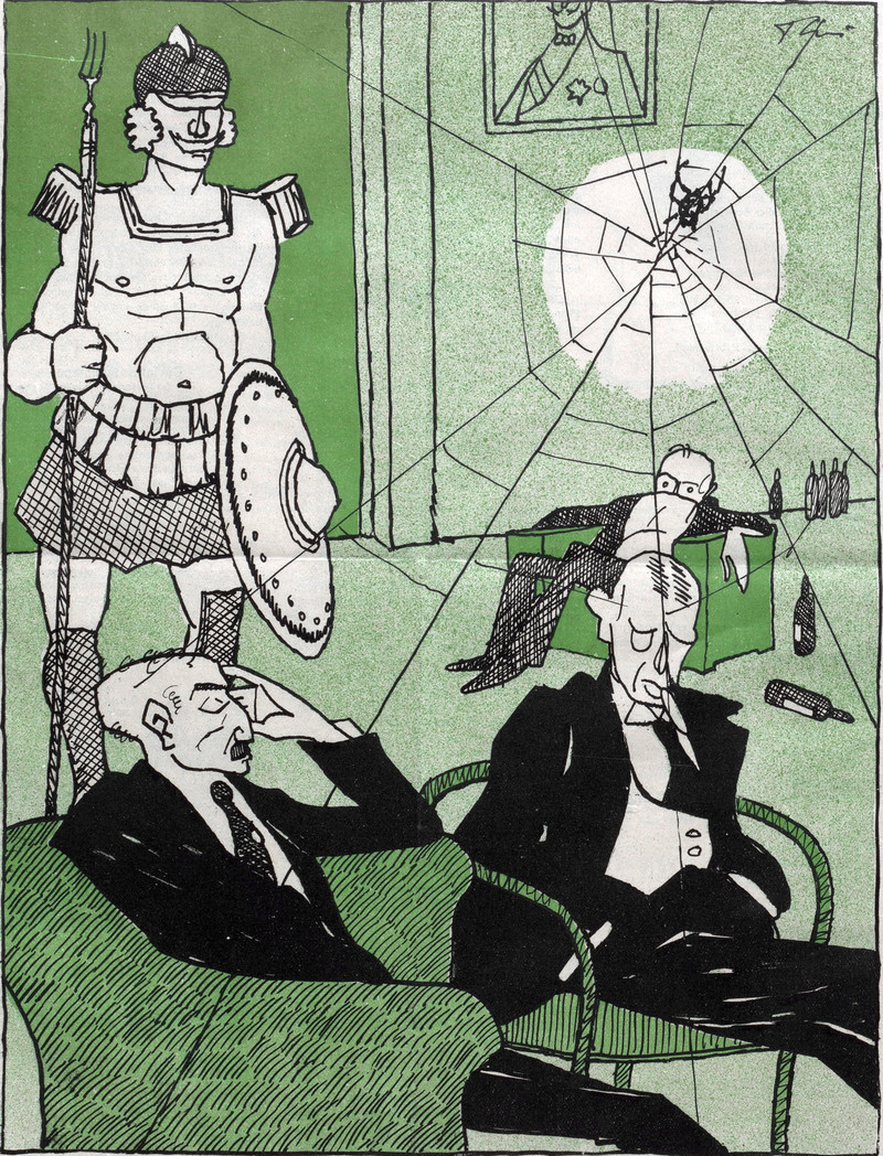 A cursive lowercase v is asking you what's wrong. From Colorado College's 1969 yearbook.