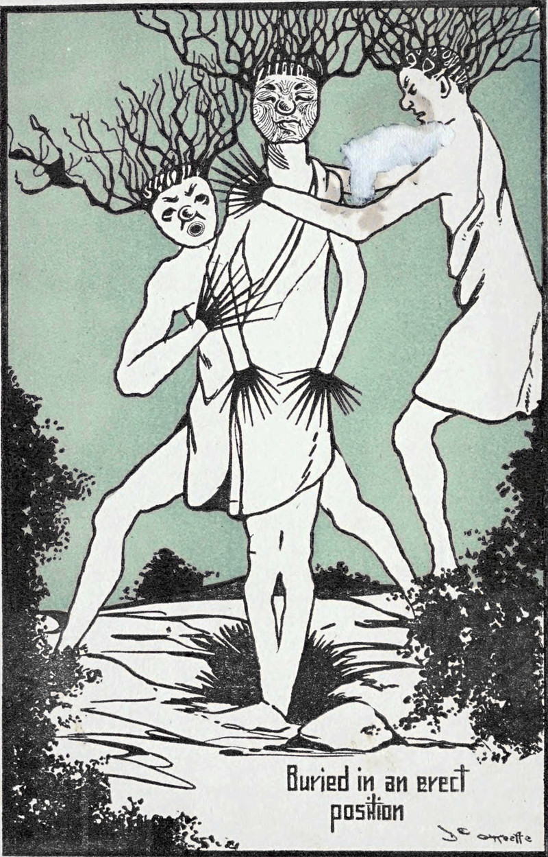 "Buried in an erect position." From American Fairy Tales by Garrett Brown and illustrated by John Edward O'Keeffe, 1911.