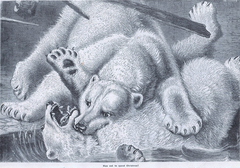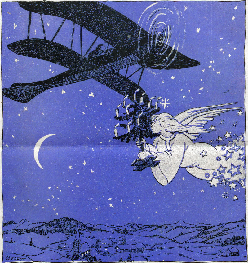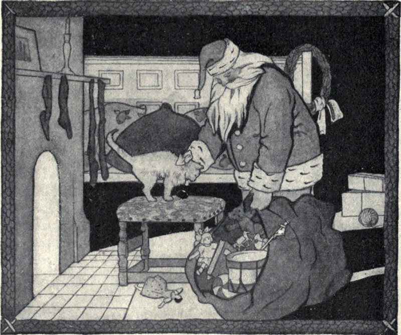 At first glance, we thought that this Santa was sporting wings and a halo with chimneys in it. Then we realized that any depiction of Santa without wings or a chimneyed halo is fake news. From Short Stories for Little Folks by Catherine Bryce, 1910.