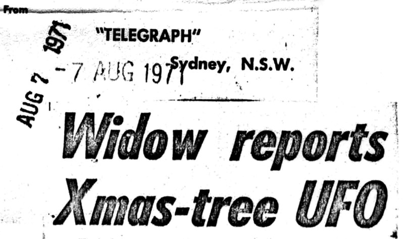 "'Flying Christmas Trees' spotted." From UFO Newsclipping Service, 1973.
