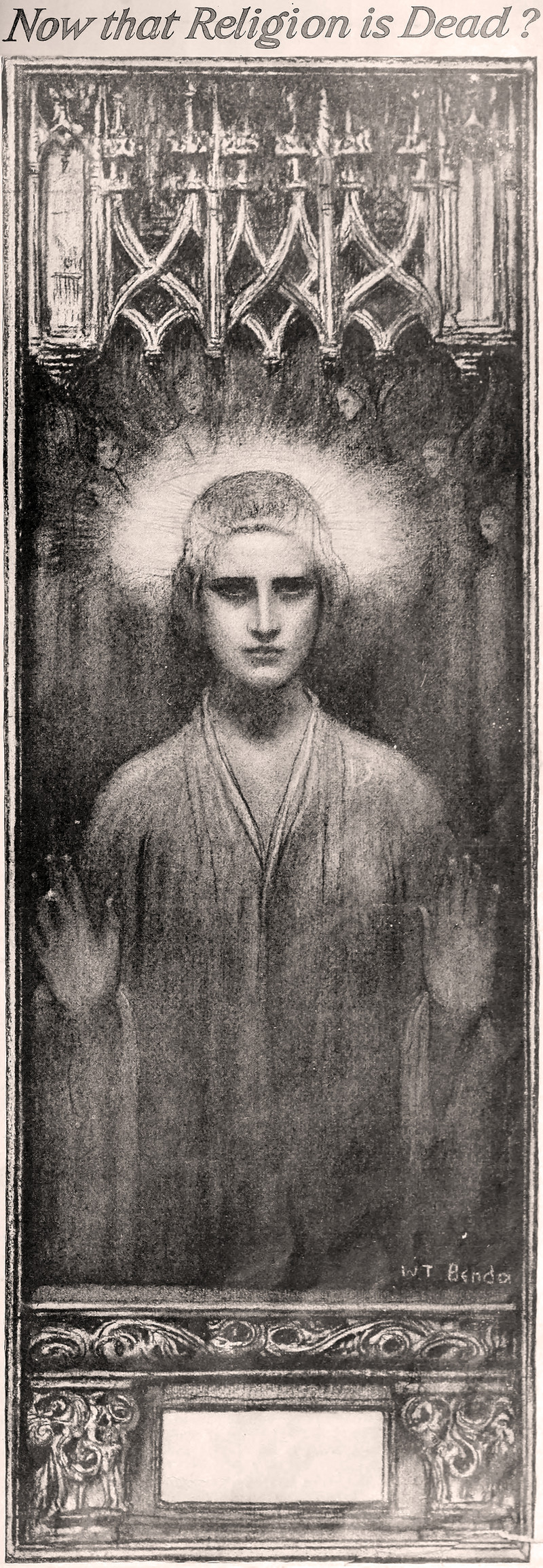 "Now that religion is dead?" From Hearst's, 1921.