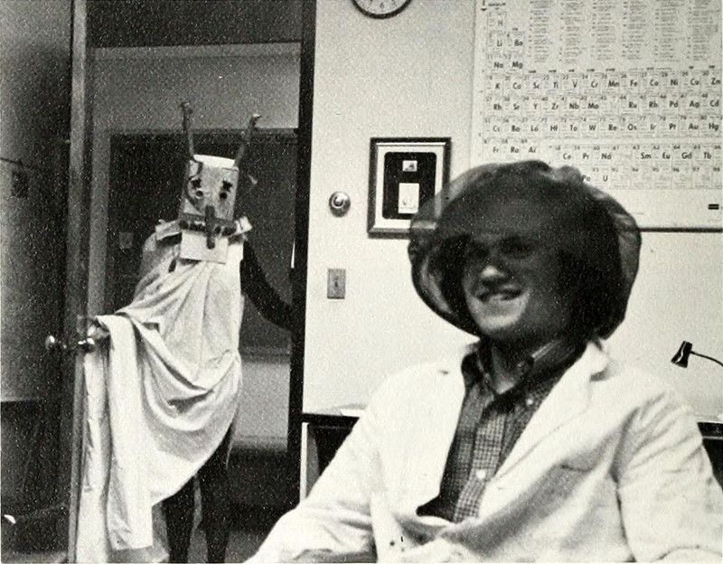 Some of the budget costume ideas just encourage people to throw things at your face. From Martin College's 1973 yearbook.