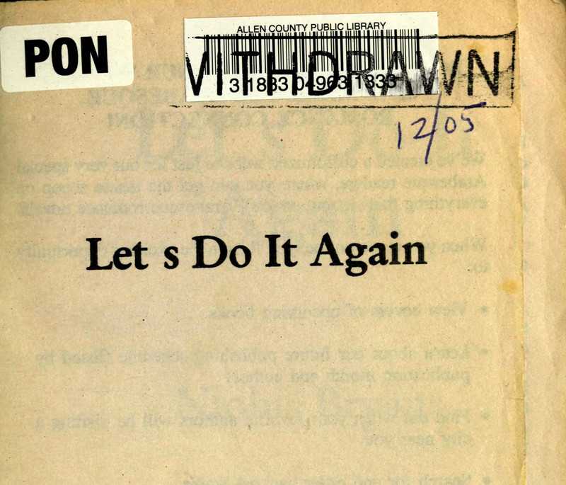 There's no apostrophe on either the half title or title page of Niobia Bryant's Let's Do It Again. This can happen with certain fonts and with careless proofreading. Let [lowercase] s do it again!