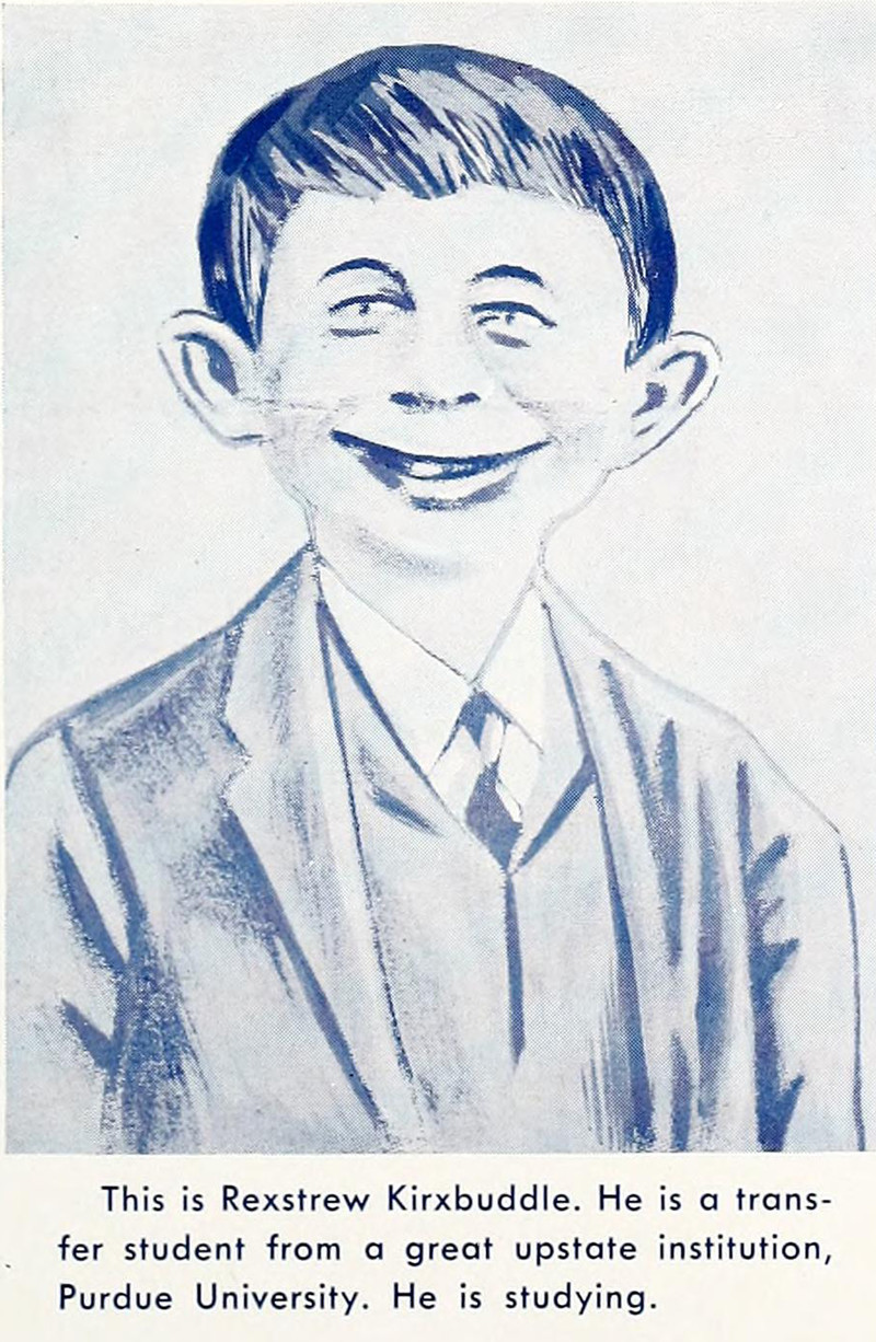 You know him as Alfred E. Neuman, but here he's identified as Rexstrew Kirxbuddle. From Indiana University's 1942 yearbook.