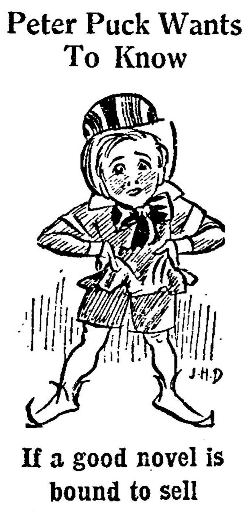 "Peter Puck wants to know if a good novel is bound to sell." From The Children's Newspaper, 1938.
