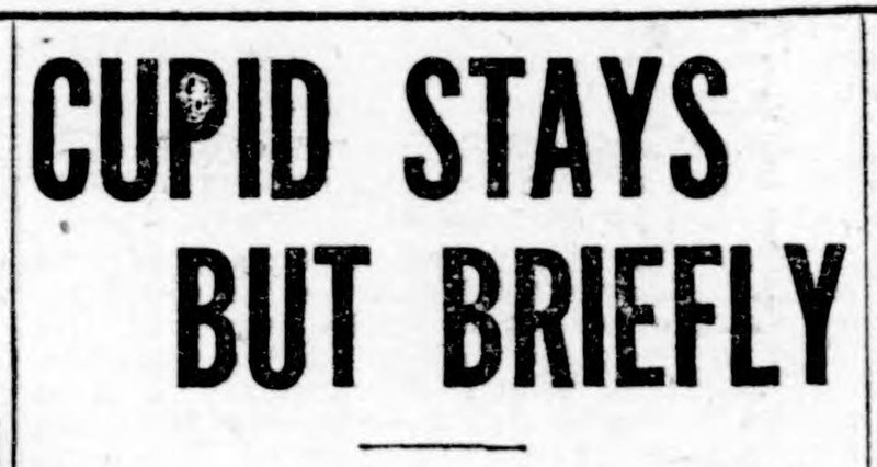 "Cupid stays but briefly." From the Duluth Herald, 1920.