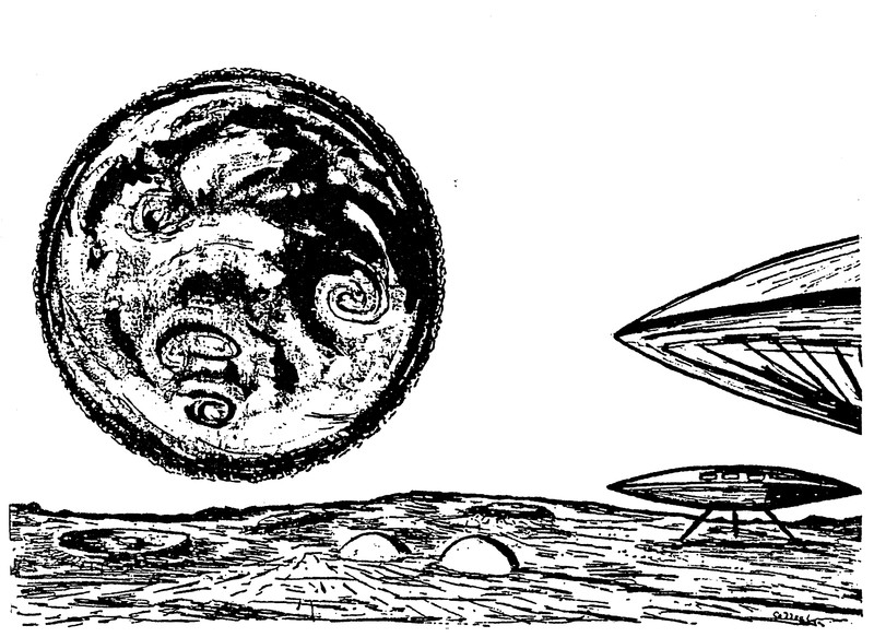"A necropolis for neuortic neologists. Isibdtas, pequibles, and whooshes." From The Aberree, 1956.